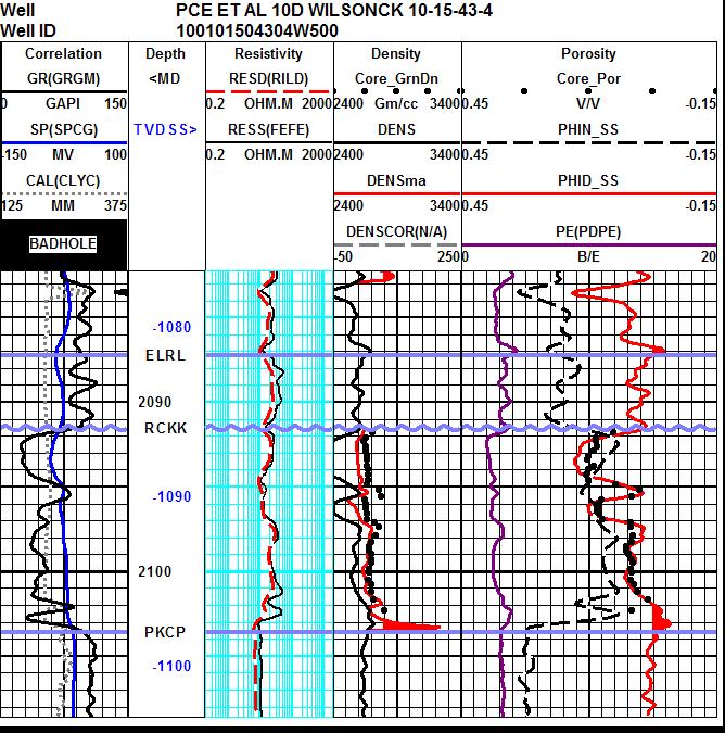 Core descriptions have a better chance of being on depth with the logs and can contain more detail than sample descriptions, especially in thinly bedded formations. The core may demonstrate more detail than the log resolution can follow, so you should try matching to average data over a 2 or 3 foot interval.