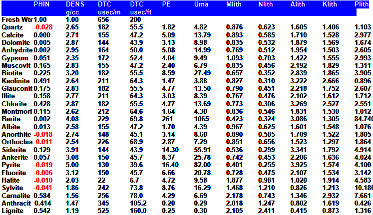 (DTS/DTCmultiplier) = Vp/Vs ratio for a particular mineral (Table 1)